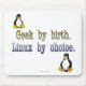 Those of us who were born geeks know that there's not much we can do to change that! However, we can do a lot in terms of choosing our computing environment. Real geeks choose Linux for a variety of reasons, including: It's fun having total control over our computers; we prefer open source to mega-monopolies; we like getting our hands dirty in the innards of our OSes; and we don't like rebooting except when installing hardware! "Geek by birth. Linux by choice."