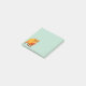Funny pig post-it notes with an illustration of a digitally painted boar with big tusks and heart shaped eyeglasses in bright yellow, orange and blue colours.
