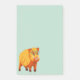 Funny pig post-it notes with an illustration of a digitally painted boar with big tusks and heart shaped eyeglasses in bright yellow, orange and blue colours.
