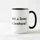 Geeky coffee mug | It's not a bug It's a feature! Funny gift idea for computer programmer and internet coder. Geek design with mouse hand icon.