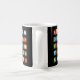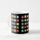Geeky coffee mug with social media app icons. Funny gift idea for computer programmers, gadget freaks and technology enthusiasts. Colourful techie smartphone screen design.