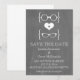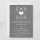 Quirky and chic Geeky Glasses Chalkboard Save the Date Announcement featuring a cute heart flanked by two pairs of nerdy eyeglasses, a manly pair and a girly pair representing the groom and bride on a chalkboard look background. This offbeat save the date invitation is perfect for announcing your geek wedding! Easy to customise, simply add the details of your wedding in the text fields provided. Click on the "Customise It" button to find additional personalisation options.