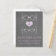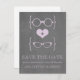Quirky and chic Geeky Glasses Chalkboard Save the Date Postcard in purple featuring a cute heart flanked by two pairs of nerdy eyeglasses, a manly pair and a girly pair representing the groom and bride on a chalkboard look background. This offbeat save the date postcard is perfect for announcing your geek wedding! Easy to customise, simply add the details of your wedding in the text fields provided. Click on the "Customise It" button to find additional personalisation options.