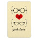 Cute and whimsical Geeky Glasses Premium Flexi Magnet featuring a red heart flanked by two pairs of geeky eyeglasses, a manly pair and a girly pair. This sweet magnet will add nerdy flair any place you stick it! Easy to customise, simply add the personalised text of your choosing. Click "Customise It" to find more personalisation options.