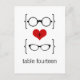 Quirky and chic Geeky Glasses Wedding Table Number Postcard featuring a red heart flanked by two pairs of geeky eyeglasses, a manly pair and a girly pair representing the groom and bride. This offbeat but sophisticated table card is perfect for your nerdy wedding! Easy to customise, simply add the personalised text of your choosing. Click on the "Customise It" button to find additional personalisation options.