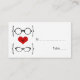 Quirky and chic Geeky Glasses Wedding Place Card featuring a red heart flanked by two pairs of geeky eyeglasses, a manly pair and a girly pair representing the groom and bride. This offbeat but sophisticated escort card is perfect for your nerdy wedding! Space is provided on this design to write in the names and table numbers where each of your wedding guests will be seated at your reception. Click on the "Customise It" button to find additional personalisation options.