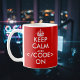 Geeky Keep calm and code on mug for programmers. Create your own funny Keep calm and carry on parody. For example with html php java javascript perl or sql. Customise background colours and text the way you want it.