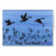 A tiny watercolor and ink landscape of Canada Geese in flight in the evening. Painted for Art-O-Mat.