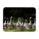Rectangular souvenir photo magnet of grey foie gras geese at a goose farm near Sarlat-la-Canéda in the Périgord province, Dordogne area in France.