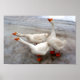 Foto by Zolotareva.Goose white on the white snow.Geese are funny.