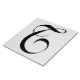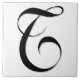 The letter T in Geessele style done in black with a white outline on a white background with a slight shadow to give it a three dimensional effect.