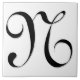 The letter N in Geessele style done in black with a white outline on a white background with a slight shadow to give it a three dimensional effect.