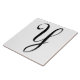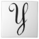 The letter Y in Geessele style done in black with a white outline on a white background with a slight shadow to give it a three dimensional effect.