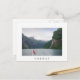 Geiranger fjord with Norwegian flag white postcard