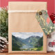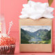 Rectangular sticker with the famous fjord Geirangerfjord, a cruise ship and the village of Geiranger between the mountains in Norway.