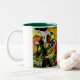 Geisha with olive green kimono original art Two-Tone coffee mug
