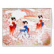 Vintage japanese colourful porcelain painting with geishas and beautiful garden landscape including flowers and bridges. Photography.