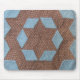 Quilt block in brown and blue "castle" pattern. The central "castle" is a brown star shape, surrounded by the "6 sided wall" with the "watch towers" extending out from the middle of the walls.
