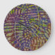 Gelli print stencilled abstract art in greens, purple and gold. This design was created using the gelli plate technique. Artwork and photography by Sandra Foster Designs ©.