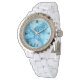 Women's watch in a gem stone slab pattern of blue Bahia granite in shades of sky blue flecked with deeper royal blue