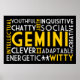 Featuring words that describe the person born under the mutable astrological air sign of Gemini in the Zodiac.