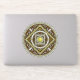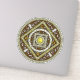 This mandala was designed for the zodiac sign, Gemini, depicting a citrine stone in the centre surrounded by elements representing the sign, such as the symbol for the sign, the constellation, and the alchemical symbol for Air, as well as filigree vines and weaves wrapping it all into a solid image in shades of yellow, silver, and brown.