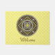 This mandala was designed for the zodiac sign, Gemini, depicting a citrine stone in the centre surrounded by elements representing the sign, such as the symbol for the sign, the constellation, and the alchemical symbol for Air, as well as filigree vines and weaves wrapping it all into a solid image in shades of yellow, silver, and brown. Customise the text on this doormat with your own preferred greeting or remove it entirely to make a unique decoration for your entryway.