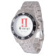 Has heft and feel of expensive stainless steel quartz watches. Good band with safety catch. I removed links, which is easy because engraved arrows show direction to push the linking pins. As always by this seller, the image (a railroad logo) is a perfect reproduction of my emailed image, and is precisely spaced and aligned.