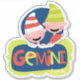 Here's a cute sticker that proudly proclaims your status as a Gemini! It features the twins with striped caps peeking over a banner with stylised text below in red and lime green that says "Gemini". Your name is in smaller text in white at the bottom right. If you prefer, you may easily remove the name by clearing the field. *Clip art used in this design is copyrighted by Encore Software, Inc., which permits use to its licensors. All rights reserved.