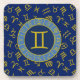 Gemini Zodiac+Astrology Symbols Pattern Gold+Blues Coaster