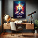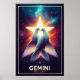 • Elegant white doves symbolise Gemini's duality and celestial connection in this cosmic poster.