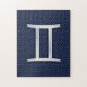 Gemini Zodiac Symbol Navy Blue Carbon Fibre Print Jigsaw Puzzle