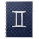 Gemini Zodiac Symbol Navy Blue Carbon Fibre Style Notebook