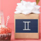 A silver chrome like Gemini zodiac symbol applique on a navy blue carbon fibre design texture print background. A modern urban racy design for a great custom birthday gift idea.
