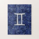 Gemini Zodiac Symbol on Navy Blue Digital Camo Jigsaw Puzzle