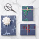 Hand-painted watercolor crystal reindeer in three gemstone varieties - ruby, emerald & blue topaz - decorate this uniquely stylish Christmas holiday wrapping paper in county blue