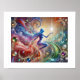 This stunning 3D render captures a watercolor masterpiece, harmonising vivid colours and flowing lines with delicate gemstone accents. The gemstones shimmer and reflect light, adding elegance and depth to the ethereal central figure. The abstract patterns create a mesmerising dance of colour, resulting in a vibrant yet serene atmosphere. Perfect for wall art, this captivating piece brings inspiration and beauty to any space.
