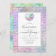 Heart shaped gemstone themed quinceanera invitation featuring elegant handwriting typography. A colourful grunge vintage calligraphy background and iridescent faux foil damask reverse compliment the scenario for a glitzy affair.