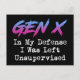 Gen X - In My Defence I Was Left Unsupervised. This funny quote retro Gen X accessory is a great gift for Generation X women, men, a husband, wife, boyfriend, girlfriend, father, mother, dad or mum who grew up as latchkey kids in the 1980s or 1990s. This vintage design is perfect for Gen Xers who had a feral upbringing, remember the 80s and 90s, and who have nostalgia for icons, movies, music, bands, and tv shows from the eighties and nineties era.