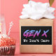 Gen X - We Don't Care. This funny retro Gen X accessory is a great gift for a Generation X woman, man, husband, wife, boyfriend, girlfriend, father, mother, dad or mum who grew up in the 1970s, 1980s or 1990s. This vintage design is perfect for Gen Xers who remember the 80s and 90s, and who have nostalgia for icons, movies, music, bands, and tv shows from the eighties and nineties era.