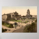 Vintage photomechanical print of Gendarmenmarkt in Berlin, Germany, which was taken at the end of the 19th century. The photograph features a view of the Square in Berlin with the German Cathedral and Das Konzerthaus in the background. The square is sometimes also called Schiller Square as it is crowned by a statue of Germany's poet Friedrich Schiller. Photograph courtesy of LOC (LC-DIG-ppmsca-00346).