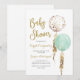 Gender Neutral Baby Shower mint and gold balloons Invitation