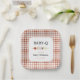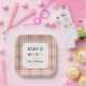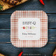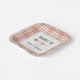 Complement your baby shower barbecue with these Green Baby Q BBQ Couple Baby Shower Paper Plates. Featuring a playful muted brown terracotta gingham background, a delicious skewer, and bold typography, this design is perfect for couples seeking a memorable, BBQ-themed celebration.