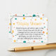 If you're hosting a no-gift-wrap display shower for a mummy-to-be, this festive card could be just the choice for you. The template fields were set up to offer instructions for guests not wrapping their presents. Please feel free to change the wording in any way you wish. I used a casual handwriting sans-serif font and set up the "Display Shower" header and "To" and "From" in corresponding colours you can change if you wish. Around the borders, over the editable white background, I've added dots/circles/faux-confetti in a delightful palette of orange, apricot, jade and mint. Perfect for a gender-neutral baby event. // 100 // Designed by Melody Watson for Paper Muserie.
