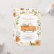 Celebrate the arrival of your little pumpkin with our Orange Pumpkin Truck Baby Shower Invitation! This charming design features an adorable orange truck loaded with pumpkins, complemented by rustic leaves and a pumpkin on the side of the template. Perfect for a fall-themed shower, this invitation captures the cosy and harvest season vibe. BBS890