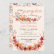 The pumpkin fall-themed baby shower invitations feature a delicate watercolor design with autumn leaves and flowers in warm hues of orange, red, and pink. The invitations showcase beautifully hand-painted pumpkins surrounded by vibrant leaves and blossoms, set against a soft, creamy background. Elegant script fonts add a touch of sophistication, while subtle watercolor washes provide a charming, rustic feel. The invitation is thoughtfully designed to create a warm, inviting setting perfect for celebrating the upcoming arrival.