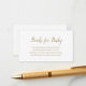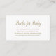 Gender neutral baby shower enclosure card featuring a simple design with "Books for Baby" in an elegant script / calligraphy along with a message asking your guests to bring a book instead of a card in a gold tone over a white background. This cute card is a great way to build up baby's library.