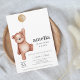 A gender neutral baby shower invitation featuring a teddy bear and beige balloon. Matching items available in the Teddy Bear Baby Shower Theme collection.