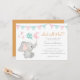 This design is part of the "Elephant Little Peanut" baby shower collection. It features cute stationery with watercolor pink and blue baby elephant illustrations complemented with party banners and floral arrangements and balloons.