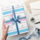 Pink, blue and white stripe with ornaments Wrapping Paper great for Christmas gender reveal gifts.